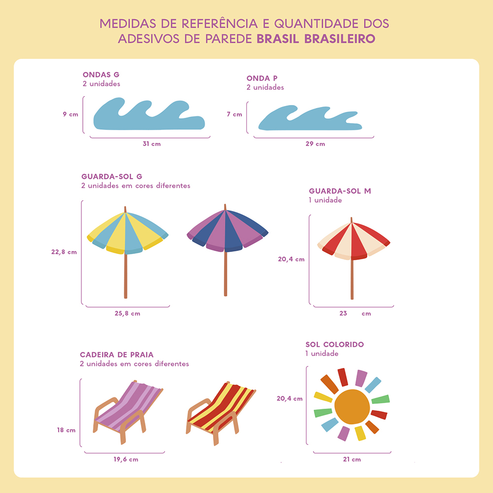 Os tamanhos de cada adesivo que compõem o tema estão disponíveis nas fotos dos produtos. Caso sua parede seja muito grande, recomendamos adquirir duas unidades para garantir uma decoração perfeita.