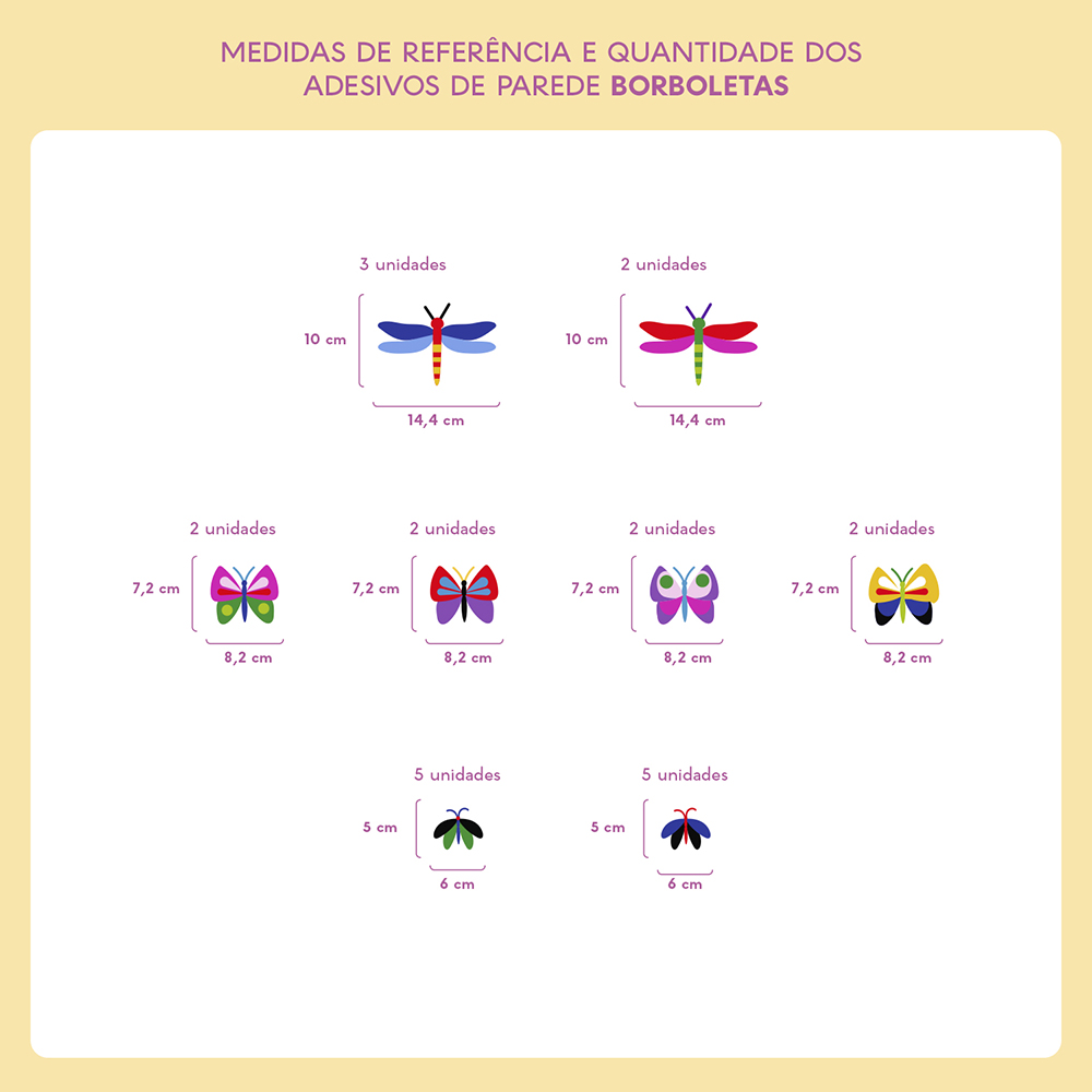 Os tamanhos de cada adesivo que compõem o tema estão disponíveis nas fotos dos produtos. Caso sua parede seja muito grande, recomendamos adquirir duas unidades para garantir uma decoração perfeita.