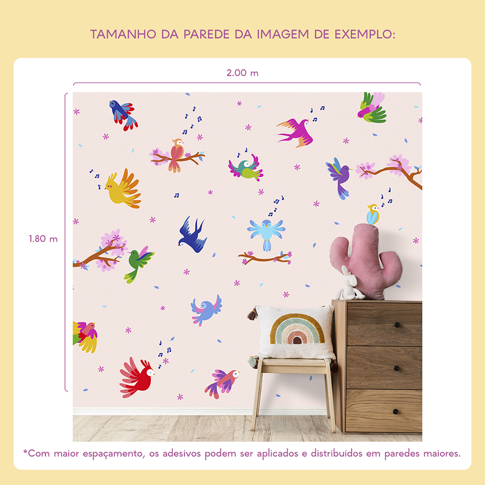 A sua parede vai ficar linda. Enviaremos junto com o seu adesivo de parede um guia completo com instruções detalhadas e sugestões de aplicação, para que você distribua os adesivos de forma harmoniosa e crie um espaço lúdico, perfeito para crianças.