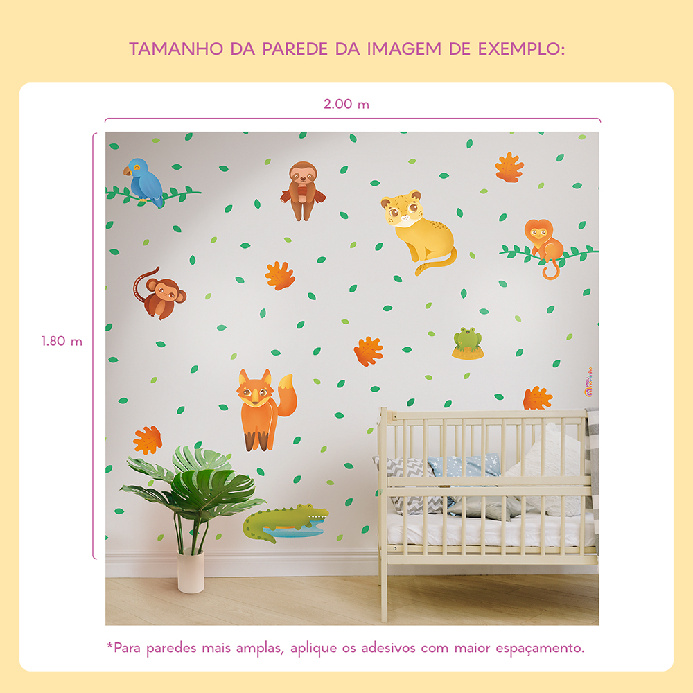 Os tamanhos de cada adesivo que compõem o tema estão disponíveis nas fotos dos produtos. Caso sua parede seja muito grande, recomendamos adquirir duas unidades para garantir uma decoração perfeita.
