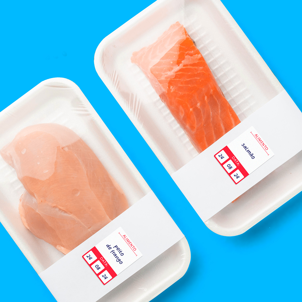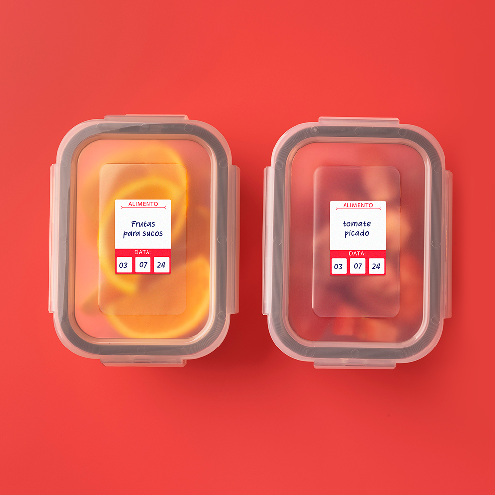 Nossas etiquetas para alimentos são práticas, basta escrever o nome do alimento e data com uma caneta esferográfica. Elas vão do freezer ao microondas.