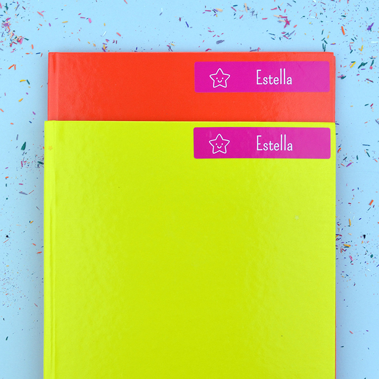 Facilite a vida na escola com nossas etiquetas escolares monocores. Elas são minimalistas e podem ser personalizadas com ou sem figura.