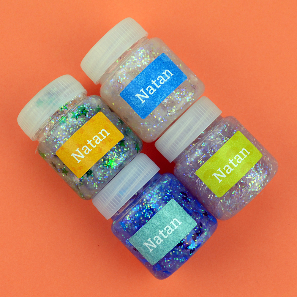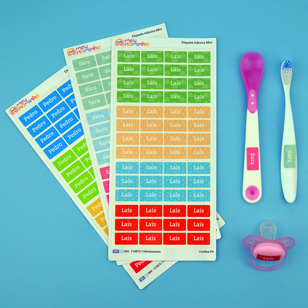Nossas etiquetas escolares são à prova d'água, esterilizáveis, vão ao microondas e são impressas com tinta ecológica, seguro para as crianças.