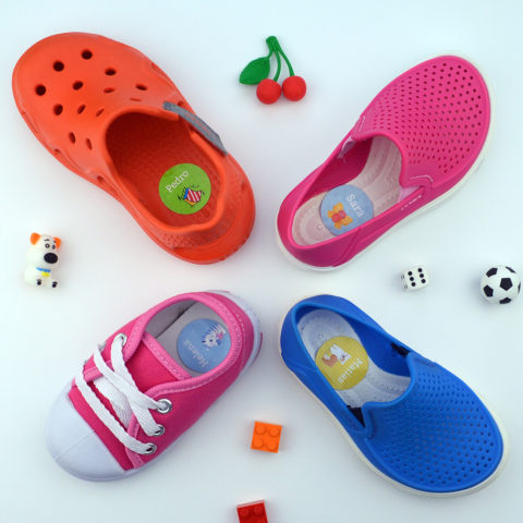 Etiqueta escolares para calçados: Acompanham película de proteção.
