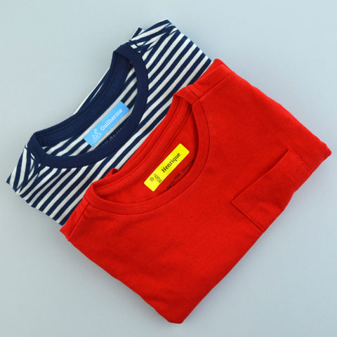 Etiquetas termocolantes para roupas: Aplicação simples com o ferro de passar e resistentes a lava roupas.