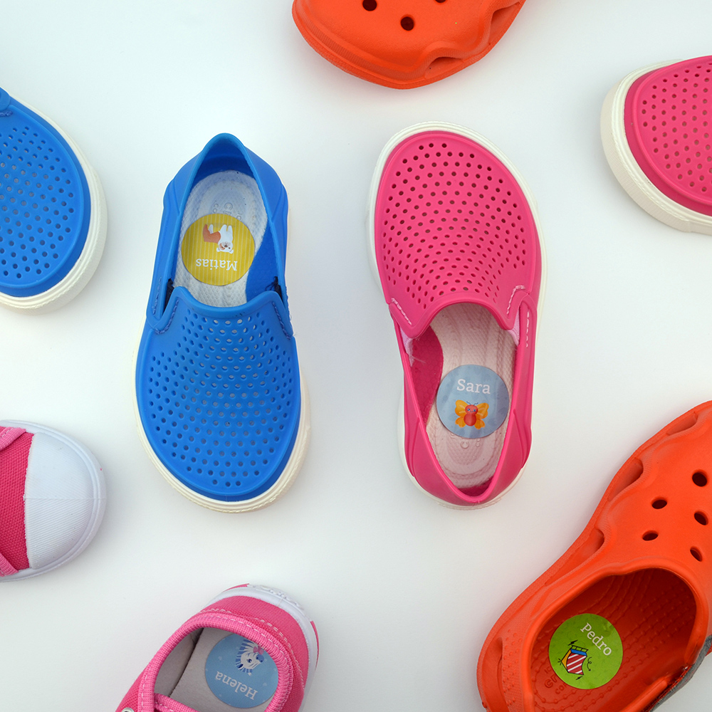 Etiqueta escolares para calçados: Acompanham película de proteção.