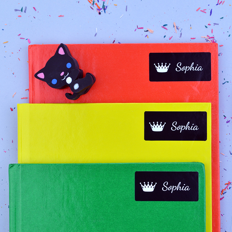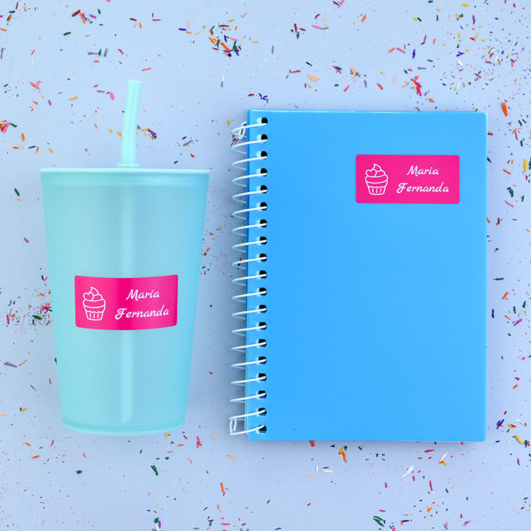Facilite a vida na escola com nossas etiquetas escolares monocores. Elas são minimalistas e podem ser personalizadas com ou sem figura.