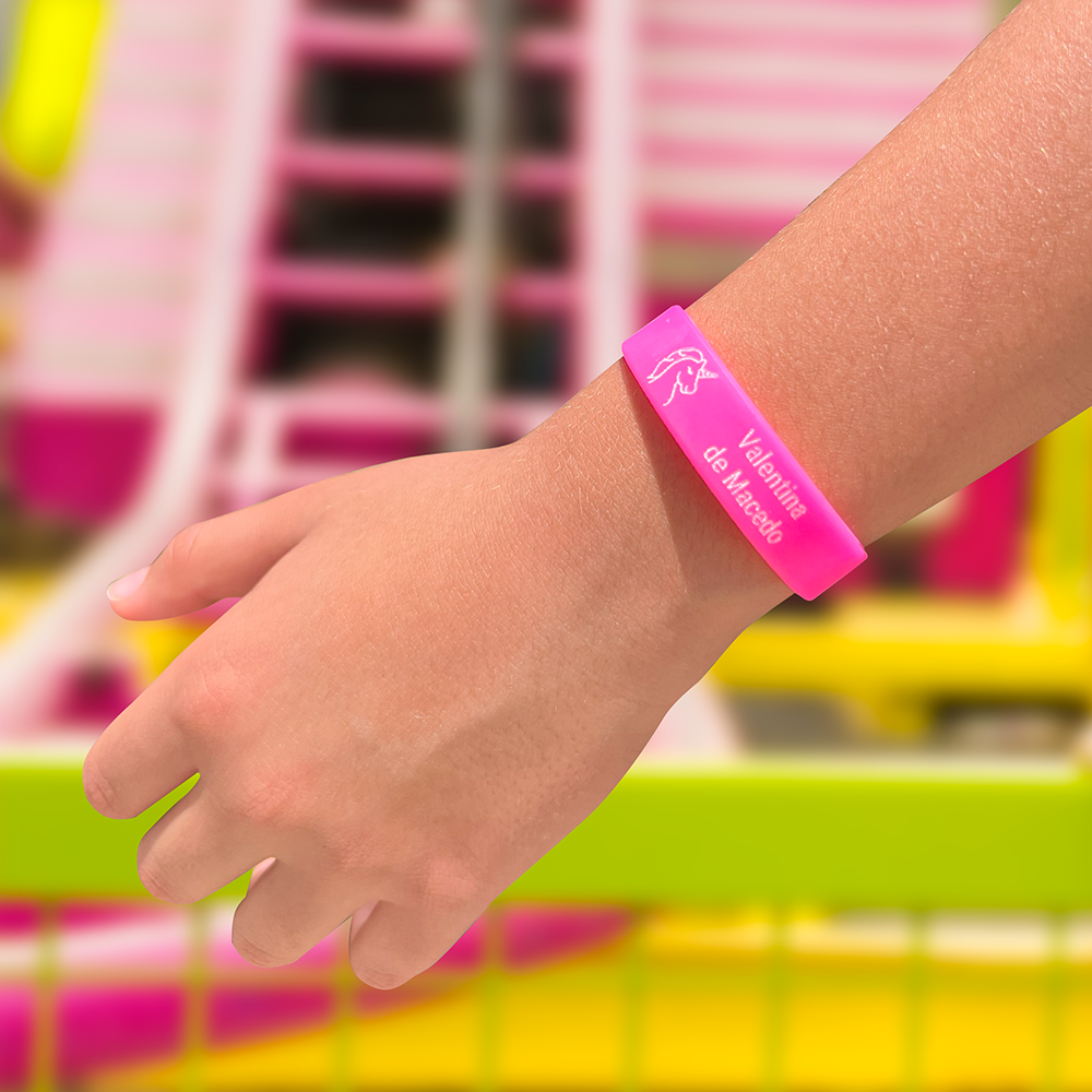 Nossa pulseira de silicone personalizada é mais do que um acessório, é um elo de segurança entre a criança e a sua família. Com duas linhas de personalização, tanto interna quanto externa, é possível adicionar informações importantes como nome completo, telefone, tipo sanguíneo ou qualquer outra informação relevante.