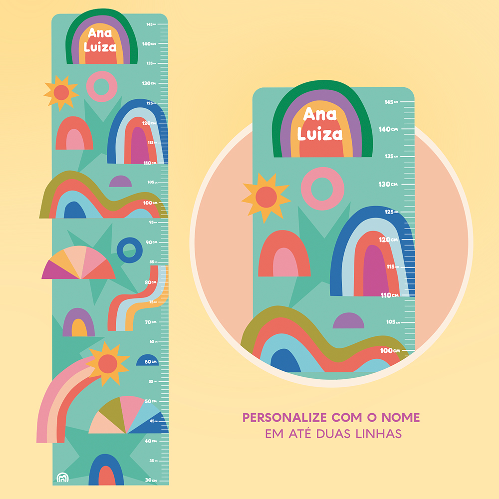 Nossas réguas de crescimento adesivas personalizáveis acompanham o crescimento com muita alegria e transforma o quartinho em um mundo mágico.